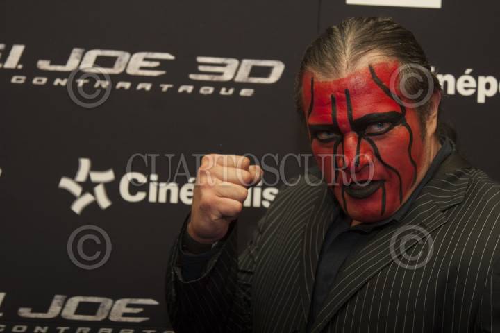 MÉXICO, D.F., 26MARZO2013.- El luchadores "Tinieblas Jr, Tinieblas y Alushe" desfilaron por la alfombra roja del estreno de la cinta "G.I. joe El "Contraataque" película protagonizada por Bruce Willis. Esta noche en el centro de la ciudad. FOTO: FRANCISCO RODRÍGUEZ /CUARTOSCURO.COM