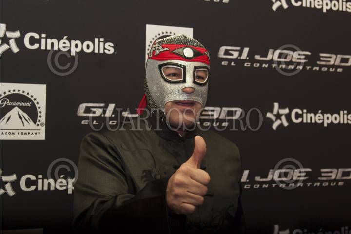MÉXICO, D.F., 26MARZO2013.- El luchadores "Tinieblas Jr, Tinieblas y Alushe" desfilaron por la alfombra roja del estreno de la cinta "G.I. joe El "Contraataque" película protagonizada por Bruce Willis. Esta noche en el centro de la ciudad. FOTO: FRANCISCO RODRÍGUEZ /CUARTOSCURO.COM