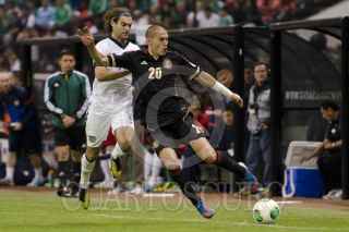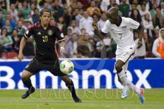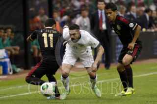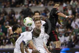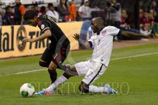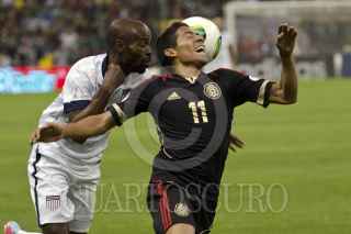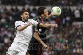 MÉXICO, D.F., 26MARZO2013.- Héctor Moreno y Herculez Gómez, durante el partido correspondiente a la Hexagonal Final de la eliminatoria a la Copa Mundial Fifa Brasil 2014 entre México vs Estados Unidos y llevado acabo en el estadio Azteca. FOTO: MISAEL VALTIERRA / CUARTOSCURO.COM