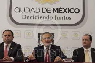 MÉXICO, D.F., 27MARZO2013.- Miguel Ángel Mancera, Jefe de Gobierno, durante la presentación del programa de prevención al delito en su modalidad casa-habitación, en el salón Bénito Juárez del Antiguo Palacio del Ayuntamiento. FOTO: MOISÉS PABLO /CUARTOSCURO.COM