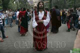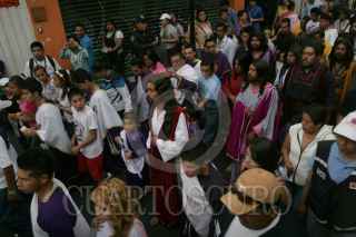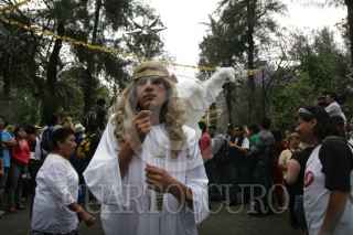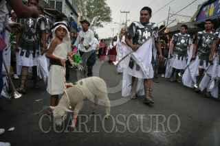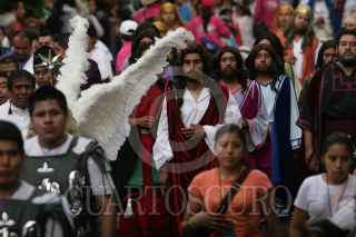 MÉXICO, D.F. 28MARZO2013.-Como parte de la 170 representación de la Semana Santa en Iztapalapa, se llevó a cabo el recorrido de las 7 casas en las calles de la Delegación Iztapalapa, en el que Cristo es representado este año por Jesús Flores Domínguez y Carmen Ledezma como María. FOTO: JUAN PABLO ZAMORA /CUARTOSCURO.COM