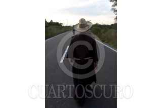 TENOSIQUE, TABASCO, 28MARZO2013.- Fray Tomas González camina sobre la carretera La Palma-Tenosique FOTO: MARCO POLO GUZMÁN HERNÁNDEZ /CUARTOSCURO.COM