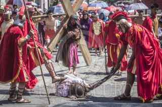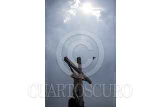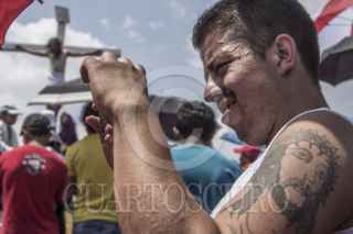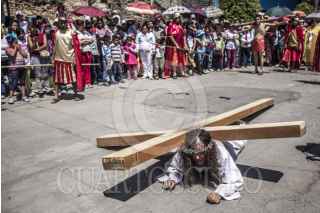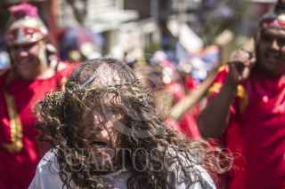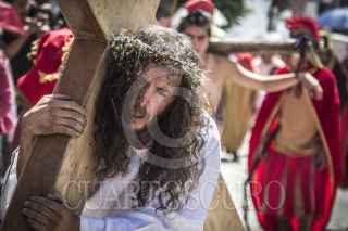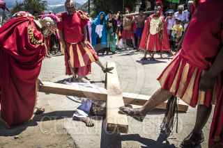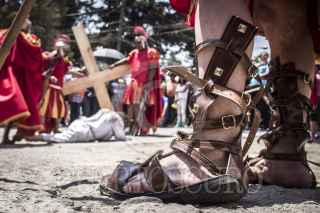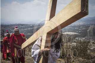 NAUCALPAN, ESTADO DE MÉXICO, 29MARZO2013.- Vecinos de la colonia México 68, realizaron la representación de la Pasión de Cristo, la cual lleva más de 20 años celebrándose, convirtiéndose en una tradición popular por la gente de la zona pues muchos de los personajes llevan participando en ella por varios años. El recorrido culmina en la parte superior del cerro donde según la religión católica se crucifico a Jesús junto a dos criminales. FOTO: ENRIQUE ORDÓÑEZ /CUARTOSCURO.COM