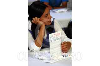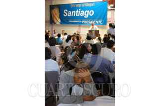 EL MARQUES, QUERETARO 04AGOSTO2005.- Yo elijo al mejor?. Asistente aburrido en el discurso de Santiago Creel. FOTO: Fabiola Mapy/CUARTOSCURO.COM