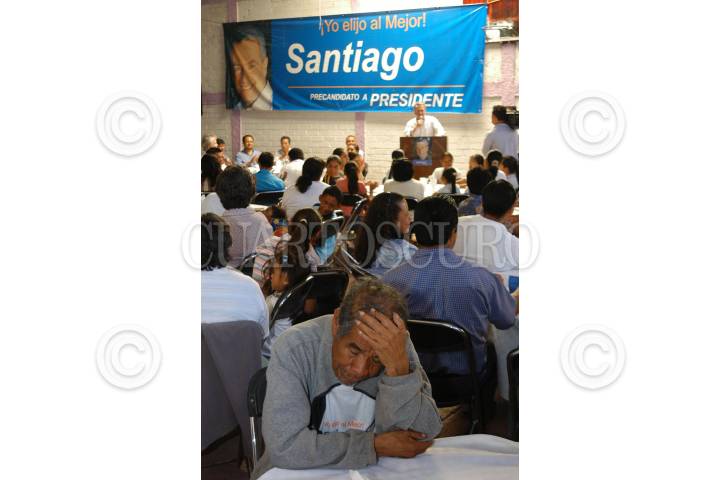 EL MARQUES, QUERETARO 04AGOSTO2005.- Yo elijo al mejor?. Asistente aburrido en el discurso de Santiago Creel. FOTO: Fabiola Mapy/CUARTOSCURO.COM