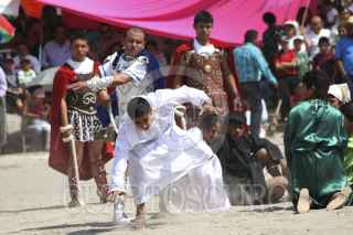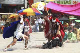 SANTA CRUZ AQUIAHUAC, TLAXCALA, 29MARZO2013.- Escenas del Circo Romano que desde hace 40 años se realiza en esta población como parte de la celebración de la Semana Santa. Lo que puede llamarse teatro comunitario, en el montaje participan solo pobladores de la localidad ubicada a unos 25 kilómetros al sur de la capital del estado. Se escenifican escenas bíblicas del tiempo en que Jerusalen era gobernada por los romanos y culminan con la crucifuicción de Cristo. FOTO: J. GUADALUPE PÉREZ /CUARTOSCURO.COM