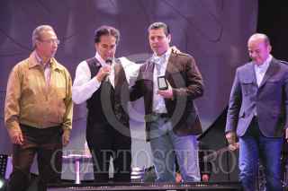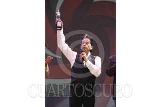 ZACATECAS, ZACATECAS, 30MARZO2013.- El cantante venezolano José Luis Rodríguez "el Puma" se presentó en el 27 Festival Cultural Zacatecas, donde fue ovacionado y reconocido con el minero de Plata por parte del gobernador del estado Miguel Alonso Reyes, Gustavo Salinas Iñíguez, director del Instituto Zacatecano de Cultura y por Arnoldo Rodríguez Reyes, Alcalde de la Capital. FOTO: ALEJANDRO ORTEGA NERI /CUARTOSCURO.COM