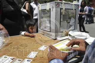 TLAXCALA, TLAXCALA 31MARZO2013.- Votaciones mediante las cuales el PRD elegirá a sus candidatos a las diputaciones locales por mayoría relativa, durante la jornada electoral se instalaron 81 casillas en 16 de los 19 distritos electorales. La foto, en el zócalo de la ciudad capital del estado. FOTO: J. GUADALAUPE PÉREZ / CUARTOSCURO.COM