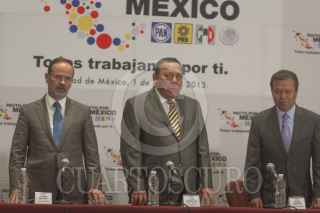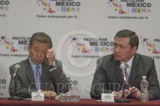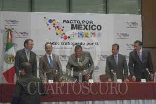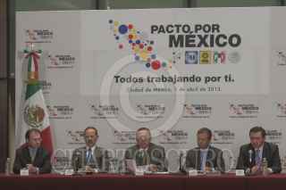 MÉXICO, D.F., 01ABRIL2013.- El Consejo Rector del Pacto por México presentó cuatro acuerdos entre los que se incluyen las audiencias públicas para que se logren los consensos necesarios en las reformas pendientes en materia educativa, financiera, de seguridad y justicia. Los integrantes del Pacto por México encabezados por el presidente del Consejo Rector y dirigente del PRD, Jesús Zambrano Grijalva, asi como los presidentes de los demás partidos César Camacho Quiróz, del PRI, Gustavo Madero, del PAN, y el Secretario de Gobernación, Miguel Angel Osorio Chong, y el Secretario de Hacienda, Luis Vidergaray, explicaron que no se excluirá a nadie de la discusión y para ello conformarán diversos grupos de discusión. FOTO: JUAN PABLO ZAMORA /CUARTOSCURO.COM