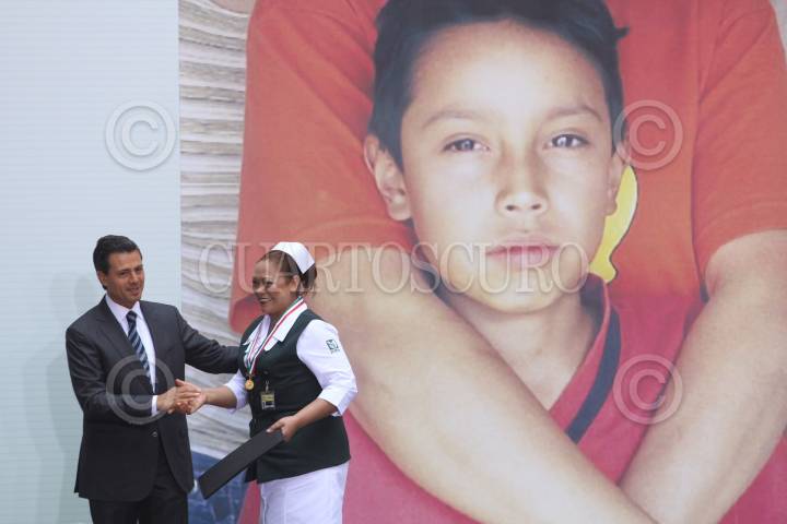 MÉXICO, D.F, 02ABRIL2013.- Enrique Peña Nieto, presidente de México acompañado de su esposa Angélica Rivera y la Secretaria de Salud Federal, Mercedes Juan López, conmemoraron el día nacional de Salud 2013 La Hipertensión, en patio central de Palacio Nacional. El presidente entrego diez premios al mérito, entre los galardonados se encuentran, Rubén Lisker Yourkowistsky y Jesús Kumate Rodríguez. FOTO: SAÚL LÓPEZ /CUARTOSCURO.COM