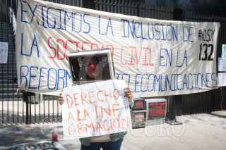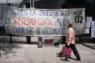MÉXICO, D.F., 02ABRIL2013.- Integrantes del movimiento #YoSoy132 se manifestaron fuera del Senado de la República, donde exigieron una Reforma en Telecomunicaciones Democrática. Al interior del reciento los senadores turnaron a comisiones la Reforma en Telecomunicaciones que aprobaron los diputados. FOTO: JUAN PABLO ZAMORA /CUARTOSCURO.COM
