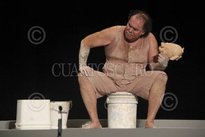 ZACATECAS, ZACATECAS 02ABRIL2013.- El actor Jesús Ochoa presentó su monólogo "El Cerdo". Una obra que versa sobre el transcurrir del tiempo de "engorda" de un cerdo, aunque ahora con algunas disertaciones políticas y filosóficas expuestas por el personaje. FOTOS: ALEJANDRO ORTEGA NERI /CUARTOSCURO.COM