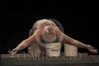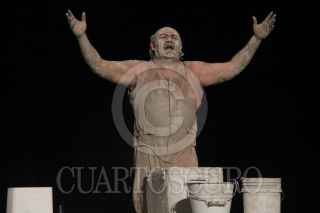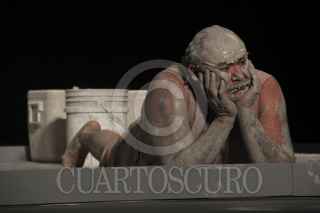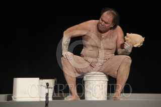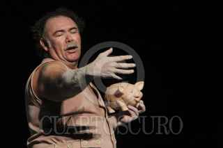 ZACATECAS, ZACATECAS 02ABRIL2013.- El actor Jesús Ochoa presentó su monólogo "El Cerdo". Una obra que versa sobre el transcurrir del tiempo de "engorda" de un cerdo, aunque ahora con algunas disertaciones políticas y filosóficas expuestas por el personaje. FOTOS: ALEJANDRO ORTEGA NERI /CUARTOSCURO.COM