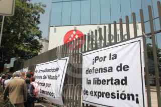 MÉXICO, D.F, 04ABRIL2013.- Integrantes de organizaciones religiosas, se manifestaron frente a las instalaciones de Grupo Radio Centro demando se reintegre el programa Religiones del Mundo, conducido desde hace 18 años por Bernardo Barranco Villafán. Los inconformes exigieron hablar con el titular de la radiodifusora Carlos Aguirre. FOTO: SAÚL LÓPEZ /CUARTOSCURO.COM