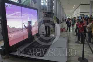 MÉXICO, D.F, 05ABRIL2013.- Una compañía de computadoras muestra promociona sus nuevos productos en el aeropuerto internacional de la Ciudad de México. FOTO: SAÚL LÓPEZ /CUARTOSCURO.COM