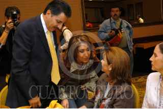MEXICO, DF 06AGOSTO2005.- El precandidato perredista a la jefatura de gobierno del Distrito Federal Jesús Ortega durante la reunión mujeres en un hotel de la avenida Reforma. En la foto con la senadora Mari Carmen Ramírez, ex candidata a la gubernatura de Tlaxcala. FOTO: Miguel Dimayuga/CUARTOSCURO.COM