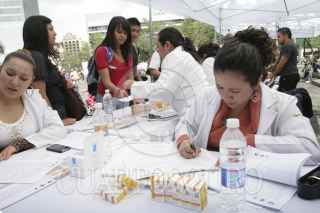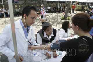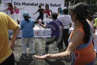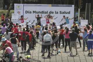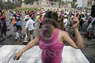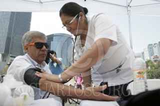MÉXICO, D.F., 07ABRIL2013.- Con motivo del "Día Mundial de la Salud y la Activación Física", el Gobierno del Distrito Federal, a través de la Secretaría de Salud (Sedesa-DF), llevó a cabo un evento masivo en la Columna del Ángel de la Independencia, donde el tema principal fue la hipertensión arterial. Alrededor de 300 profesionales de la salud, entre médicos y enfermeras, ofertaron diversos servicios como: Toma de presión arterial, prueba de glucosa, consultas médicas de factores de riesgo de cáncer de piel, asesoría nutricional, determinaciones de Índice de Masa Corporal (IMC) y rutinas de activación física. FOTO: JUAN PABLO ZAMORA / CUARTOSCURO.COM