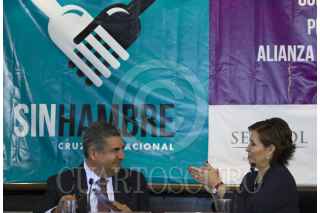 MÉXICO, D.F., 08ABRIL2013.- Rosario Robles Berlanga, titular de la Secretaria de Desarrollo Social durante la firma de convenio de colaboración para contribuir a la Cruzada Nacional Contra el Hambre con Pedro Padierna, Presidente de PepsiCo México. FOTO: GUILLERMO PEREA /CUARTOSCURO.COM