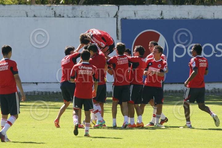 ZAPOPAN, JALISCO, 09ABRIL2013.- En las instalaciones de Verde Valle, el equipo de las Chivas del Guadalajara realizo actividades de preparación para lo que será su próximo compromiso de la Jornada 14 del Torneo Clausura 2013 de la Liga MX frente al equipo del Atlante. En la imagen se observa a Rafael Márquez Lugo y Benjamín Galindo. FOTO: FERNANDO CARRANZA GARCÍA /CUARTOSCURO.COM