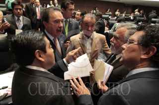 MÉXICO, D.F., 09ABRIL2013.- Lose senadores; Miguel Barbosa, PRD, Emilio Gamboa Patrón, PRI, Raúl Cervantes Andrade, PRI, Alejandro Encinas Rodríguez, PRD y Armando Ríos Piter, PRD, durante la sesión en la Cámara de Senadores. FOTO: CUARTOSCURO.COM