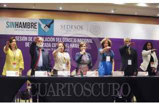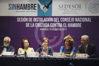 MÉXICO, D.F., 10ABRIL2013.- Álvaro Urreta, Maria Eugenia Romero, Rosario Robles Berlanga, Jeanett Arriola y Carlos Plancarte, tomaron protesta como parte del Consejo Nacional de la Cruzada contra el Hambre; el encabezado por la titular de la Sedesol, Rosario Robles. FOTO: IVÁN MÉNDEZ /CUARTOSCURO.COM