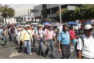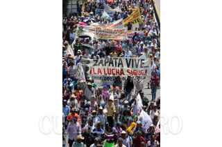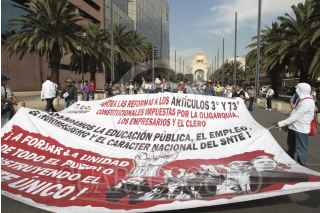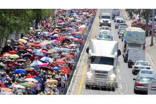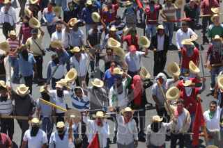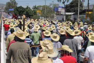 CHILPANCINGO, GUERRERO, 10ABRIL 2013.- Profesores disidentes de la Coordinadora Estatal de Trabajadores de la Educación de Guerrero, marcharon en conjunto con integrantes de organizaciones sociales, normalistas, padres de familia y sindicatos, el contingente partió de su campamento ubicado en la colonia Jacarandás hacia zócalo de Chilpancingo, durante su recorrido pasaron por la autopista del sol, la cual se mantuvo cerrada en dirección a Mexico por dos horas debido al paso del contingente. FOTO: SAÚL LÓPEZ /CUARTOSCURO.COM