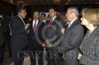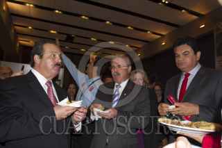 MÉXICO D.F.,10ABRIL2013.- Enrique Martínez, Martínez, secretario de Agricultura, Gerry Ritz, ministro de agricultura de Canadá, y Mario López Valdez, gobernador de Sinaloa, recorrieron la exposición en temas agroalimentarios y pesqueros inaugurada en el marco de la inauguración del XIII Foro de Expectativas del Sector Agroalimentario y Pesquero 2013. FOTO: MOISÉS PABLO /CUARTOSCURO.COM