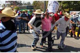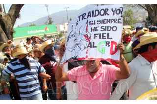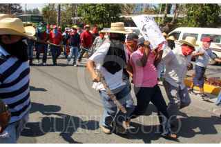 CHILPANCINGO, GUERRERO, 10ABRIL 2013.- Guillermo Galindo Gallegos, policía ministerial del municipio de Tlalpa, fue retenido por maestros disidentes de la Coordinadora Estatal de Trabajadores de la Educación del estado de Guerrero, amarrado y obligado a caminar descalzo más de cinco kilómetros del zócalo al plantón de los maestros ubicado en la colonia Jacarandás. Galindo Gallegos portaba una pistola nueve milímetros y fue acusado de ser un infiltrado del gobierno. FOTO: SAÚL LÓPEZ /CUARTOSCURO.COM