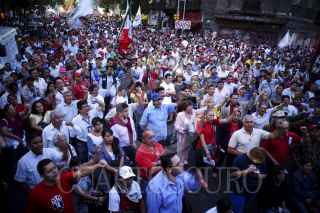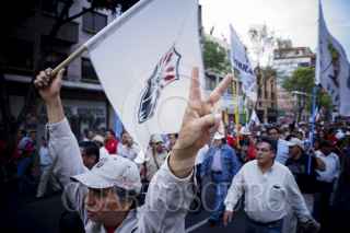 MÉXICO, D.F., 10ABRIL2013.- Integrantes del Sindicato Mexicano de Electricistas marcharon desde la sede del Sindicato a la Secretaria de Gobernación para exigir la resolución del conflicto laboral. Mañana se provee una reunión de la dirigencia del sindicato con Miguel Ángel Osorio Chong, secretario de gobernación. FOTO: ADOLFO VALTIERRA /CUARTOSCURO.COM