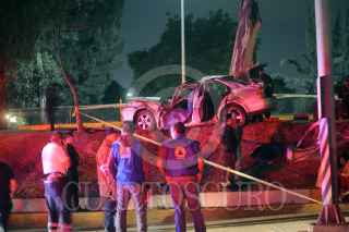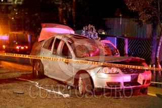 MÉXICO, D.F., 11ABRIL2013.- Un joven de 21 años perdió la vida al impactar el auto Jetta en el que viajaba contra un árbol después de volcar en Avenida Rio Churubusco a la altura de la calzada La Viga en la colonia U.H. Modelo en Iztapalapa. El joven festejaba su aprobación del examen la UNAM en compañía de amigos, los cuales resultaron lesionados. FOTO: LUIS CARBAYO /CUARTOSCURO.COM