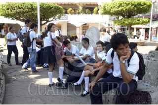 ACAPULCO, GUERRERO, 11ABRIL2013.- Alumnos y maestros del Cobach 7 regresaron a clases en el zócalo de Acapulco el pasado miércoles, donde además efectuaron una protesta para exigir seguridad a las autoridades. Profesores consultados manifestaron que no hay condiciones para impartir clases en la colonia Santa Cecilia, donde se ubica el Cobach 7 e insistieron en ser reubicados. Aproximadamente mil alumnos del Cobach 7 toman clases en la Unidad Deportiva Acapulco (UDA) de la colonia Progreso, debido al secuestro y posterior asesinato de un profesor y una alumna del plantel, cuyos cuerpos fueron localizados en una vereda del cerro del Veladero el pasado 8 de marzo, tras una semana de estar desaparecidos. FOTO: BERNANDINO HERNÁNDEZ /CUARTOSCURO.COM