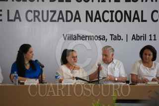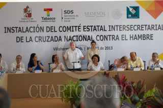 VILLAHERMOSA, TABASCO, 11ABRIL2013.- Arturo Núñez Jiménez, gobernador local atestiguó la Instalación del Comité Estatal Intersecretarial de la Cruzada Nacional contra el Hambre, en la cual firmó como testigo de calidad en donde siete municipios; principalmente de la zona chontalpa, asegura, se beneficiaran con este proyecto federal. El evento tuvo lugar en Palacio de Gobierno, donde el mandatario tabasqueño estuvo acompañado de Adriana González Maíz Flores, directora General de Vinculación Interestucional de la SEDESOL, Martha Lilia López Aguilera, presidenta del DIF y gabite de trabajo. FOTO: MARCO POLO GUZMÁN HERNÁNDEZ/CUARTOSCURO.COM