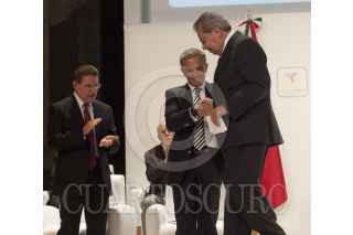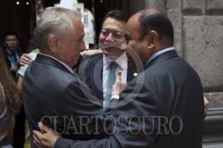 MÉXICO, D.F., 11ABRIL2013.- Joel Ayala, dirigente de la Federación de Sindicatos de Trabajadores al Servicio del Estado, Marío Delgado, senador del PRD y Juan Ayala Rivero, presidente del Sindicato Único de Trabajadores del Gobierno del Distrito Federal, al finalizar el Foro "Instalación del Consejo de la Reforma Política para el Distrito Federal", en el Antiguo Colegio de Sal Ildefonso. FOTO: MOISÉS PABLO/ CUARTOSCURO.COM