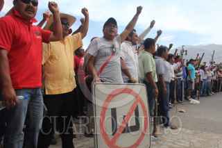 CHILPANCINGO, GUERRERO, 11ABRIL2013.- Maestros integrantes de la Coordinadora Estatal de Trabajadores de la Educación en Guerrero, los cuales continuan con sus protestas que intentan frenar la Reforma Educativa, bloquean la autopista del Sol. FOTO: SAUL LÓPEZ /CUARTOSCURO.COM