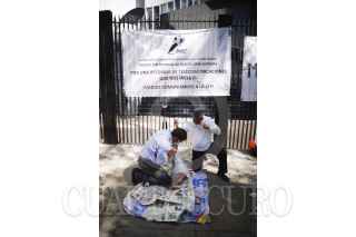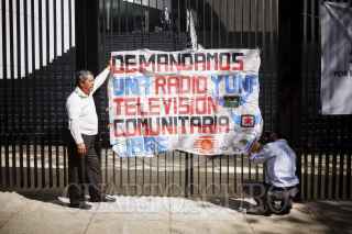 MÉXICO, D.F., 11ABRIL2013.- Integrantes de las radios comunitarias afiliadas a la Asociación Mundial de Radios Comunitarias (AMARC-México) y estudiantes del movimiento #Yo soy 132, se manifestaron frente a la sede del Senado de la República para demandar a los legisladores el reconocimiento en la reforma a la ley de Telecomunicaciones a los medios comunitarios. FOTO: ADOLFO VALTIERRA /CUARTOSCURO.COM