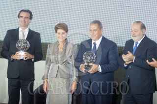 MÉXICO, D.F., 11ABRIL2013.- La Fundación Carlos Slim entregó la noche de hoy los premios “Carlos Slim en Salud” estuvieron presentes, Marco Antonio Slim, presidente del Consejo del Instituto Carlos Slim en Salud, Roberto Tapia Conyer, Director General de la Fundacion Carlos Slim y la Secretaria de Salud, Dra. Mercedes Juan. Los galardonados fueron: el Dr. José Eduardo Gotuzzo en “Trayectoria e Investigación y la fundación DNDI, por sus siglas en ingles, “Iniciativa de Medicamentos para las Enfermedades Desatendidas América Latina”. La entrega se llevó acabo en el Museo Soumaya. Tambien estuvieron presente, Alfredo Elias Ayub y su esposa, Johanna Slim Domit FOTO: FRANCISCO RODRÍGUEZ /CUARTOSCURO.COM