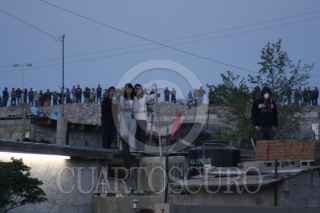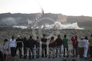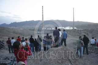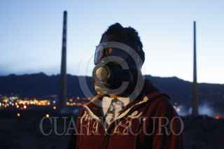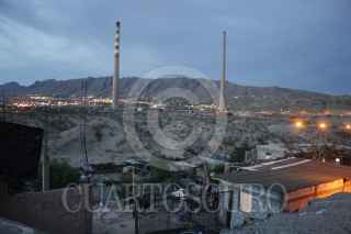 CIUDAD JUÁREZ, CHIHUAHUA, 13ABRIL2013.- La empresa estadounidense American Smelting and Refining Company (Asarco), demolió hoy sus emblemáticas chimeneas. Fue a las 06:51 cuando habitantes de la franja fronteriza de Cd. Juárez, escucharon las primeras detonaciones que llevarían el derrumbe de la primera torre de la fundidora; acontecimiento que fue presenciado por decenas de juarenses que madrugaron para no perderse el espectáculo. Asarco por años fue acusada de contaminar el aire y el suelo con plomo, en ambos lados de la frontera, que según reportes periodísticos cobró la vida de decenas de niños y jóvenes. FOTO: NACHO RUIZ /CUARTOSCURO.COM