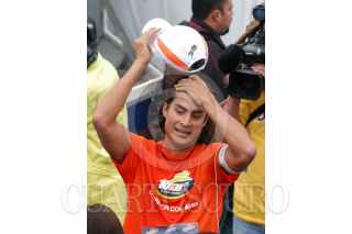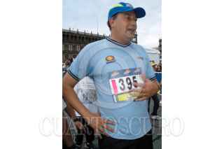 MEXICO, D.F 14AGOSTO2005.- El conductor deportivo Antonio de Valdez llega a la meta de la carrera Televisa Deportes. FOTO: Miguel Dimayuga/CUARTOSCURO.COM
