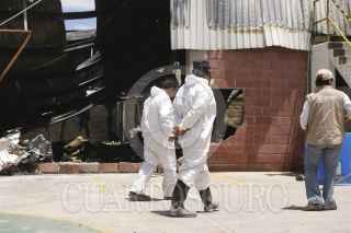 ATITALAQUIA, HIDALGO. 14ABRIL13.- La Secretaría de Salud de Hidalgo (SSH), a través de su titular, Pedro Luis Noble Monterrubio, pidió a las autoridades federales retirarle la licencia sanitaria federal a la empresa Agroquímicos ATC, siniestrada el pasado domingo en el Parque Industrial Atitalaquia. Además el funcionario exigió el confinamiento de los residuos tóxicos y la demolición de la planta siniestrada. Por su parte, peritos federales acudieron para realizar las pesquisas por la averiguación que la PGR tiene abierta, en tanto que personal especializado hace limpieza de la zona. FOTO: FRANCISCO VILLEDA /CUARTOSCURO.COM