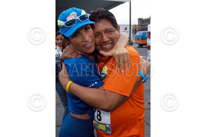 MEXICO, D.F 14AGOSTO2005.- El conductor deportivo Antonio de Valdez llega a la meta de la carrera Televisa Deportes. FOTO: Miguel Dimayuga/CUARTOSCURO.COM