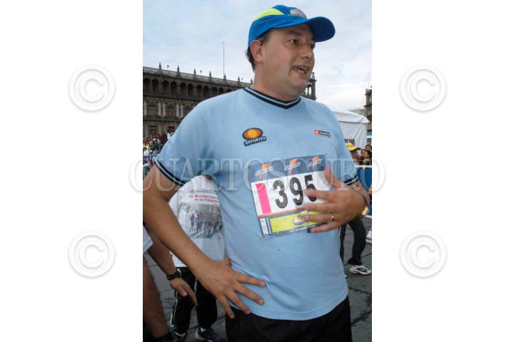 MEXICO, D.F 14AGOSTO2005.- El conductor deportivo Antonio de Valdez llega a la meta de la carrera Televisa Deportes. FOTO: Miguel Dimayuga/CUARTOSCURO.COM