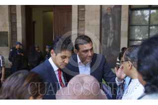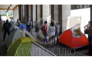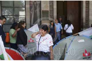 MÉXICO, D.F. 16ABRIL2013.- La delegada, Maricela Contreras Julián, dirigiéndose al interior del edificio de la delegación mientras miembros del campamento del Congreso Popular, Social y Ciudadano del DF piden apoyo para establecer un dialogo y llegar a un acuerdo sobre las "anomalías" en la obra de Wal- Mart en San Pedro Martir. FOTO: ALEJANDRO NEYRA /CUARTOSCURO.COM
