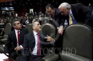 MÉXICO, D.F., 16ABRIL2013.- Los diputados priistas Jorge Herrera Delgado, Manlio Fabio Beltrones, Héctor Gutiérrez de la Garza y Marco Antonio Bernal, en la sesión solemne en la Cámara de Diputados. FOTO: CUARTOSCURO.COM