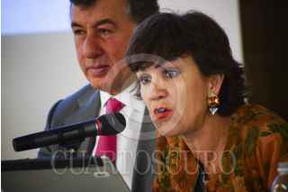 MÉXICO, D.F., 16ABRIL2013.- Conferencia "Camarón, una batalla legendaria en la intervención francesa en México" del historiador Jean Meyer y el sociólogo, Javier Siller; para conmemorar el 150 aniversario de la Batalla de Camarón de Tejada, Veracruz, México. Al evento realizado en el Museo Rufino Tamayo asistió la embajadora de Francia en México, Elisabeth Beton Delègue. FOTO: ADOLFO VALTIERRA /CUARTOSCURO.COM