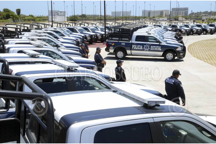 ACAPULCO, GUERRERO, 16ABRIL2013.- Ante los hechos de violencia que se han vivido en la Costa Grande y Acapulco, donde han muerto de forma violenta más de 35 personas en abril, el gobernador Ángel Aguirre entregó 35 patrullas a la policía estatal. Manifestó que “estamos trabajando en el operativo; tuvimos una reunión hace tres o cuatro días de evaluación, tendremos otra para reforzar aquello que en un momento dado tengamos que fortalecer”. En la imagen el gobernador guerrerense saluda a Luis Walton, presidente municipal de Acapulco. FOTO: BERNANDINO HERNÁNDEZ /CUARTOSCURO.COM