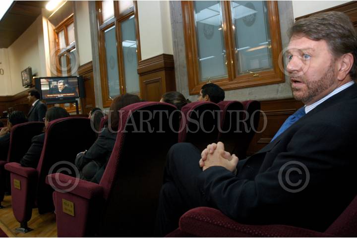 MEXICO, DF 15AGOSTO2005.- El ex canciller Jorge Castañeda sale de la suprema corte de justicia luego de se pospusiera el tratamiento de la resolución que le impide ser candidato independiente a la presidencia de la república. Castañeda fue acompañado entre otros por el cuestionado ex perredista Ramón Sosamontes y el fiscal especial para delitos del pasado, Ignacio Carrillo Prieto. FOTO: Miguel Dimayuga/CUARTOSCURO.COM