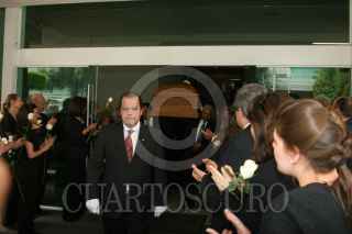 MÉXICO, D.F.17ABRIL2013.- El fundador del Partido Verde Ecologista, Jorge Emilio González, acudio al funeral del Arquitecto, Pedro Ramírez Vázquez, fallecido el dia de ayer exactamente a los 94 años en una funeraria al sur de la ciudad. Sus restos seran cremados en el panteón Español y depositados en la basilica de Guadalupe, una de sus obras, despues de un homenaje en el Museo de Antropología, el cual tambien diseño y que se prevé sea dentro de unas semanas. FOTO: FRANCISCO RODRÍGUEZ /CUARTOSCURO.COM