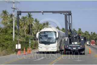 COYUCA DE BENÍTEZ, GUERRERO, 17ABRIL2013.- Sin vigilancia, policías federales montaron una grúa con el sistema rayos gama para la revisión y escaneo de los vehículos que transitan por la carretera federal Acapulco-Zihuatanejo a la altura del entronque de la vereda que va a la comunidad de Yetla, municipio de Coyuca de Benítez. Después de diez minutos llegaron agentes de esa corporación para tratar de impedir el trabajo periodístico que realizaba este reportero gráfico al que mantuvieron detenido por un lapso de casi una hora pese a que se identificó como trabajador de prensa y con credencial oficial del IFE, incluso en tono prepotente el agente que dijo estar al mando y no porta uniforme de la corporación llegó con amenazas y lenguaje altisonante de quitar el equipo de trabajo que consiste en una cámara fotográfica. FOTO: BERNANDINO HERNÁNDEZ /CUARTOSCURO.COM
