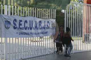 OAXACA, OAXACA, 17ABRIL2013.- Agremiados al Sindicato de Empleados de Confianza de la Universidad Autónoma Benito Juárez de Oaxaca (SECUABJO) tomaron este miércoles las instalaciones de Ciudad Universitaria como parte de su jornada de lucha a fin de que les den solución a su pliego petitorio. Con esta acción se quedaron sin clases 15 mil estudiantes. FOTO: ARTURO PÉREZ ALFONSO /CUARTOSCURO.COM