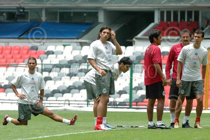 MEXICO, D.F. 15AGOSTO2005.- Ricardo Antonio Lavolpe, director técnico de la selección nacional y Francisco "kikín" Fonseca durante su entrenamiento en el Estadio Azteca. FOTO: Iván Stephens/CUARTOSCURO.COM